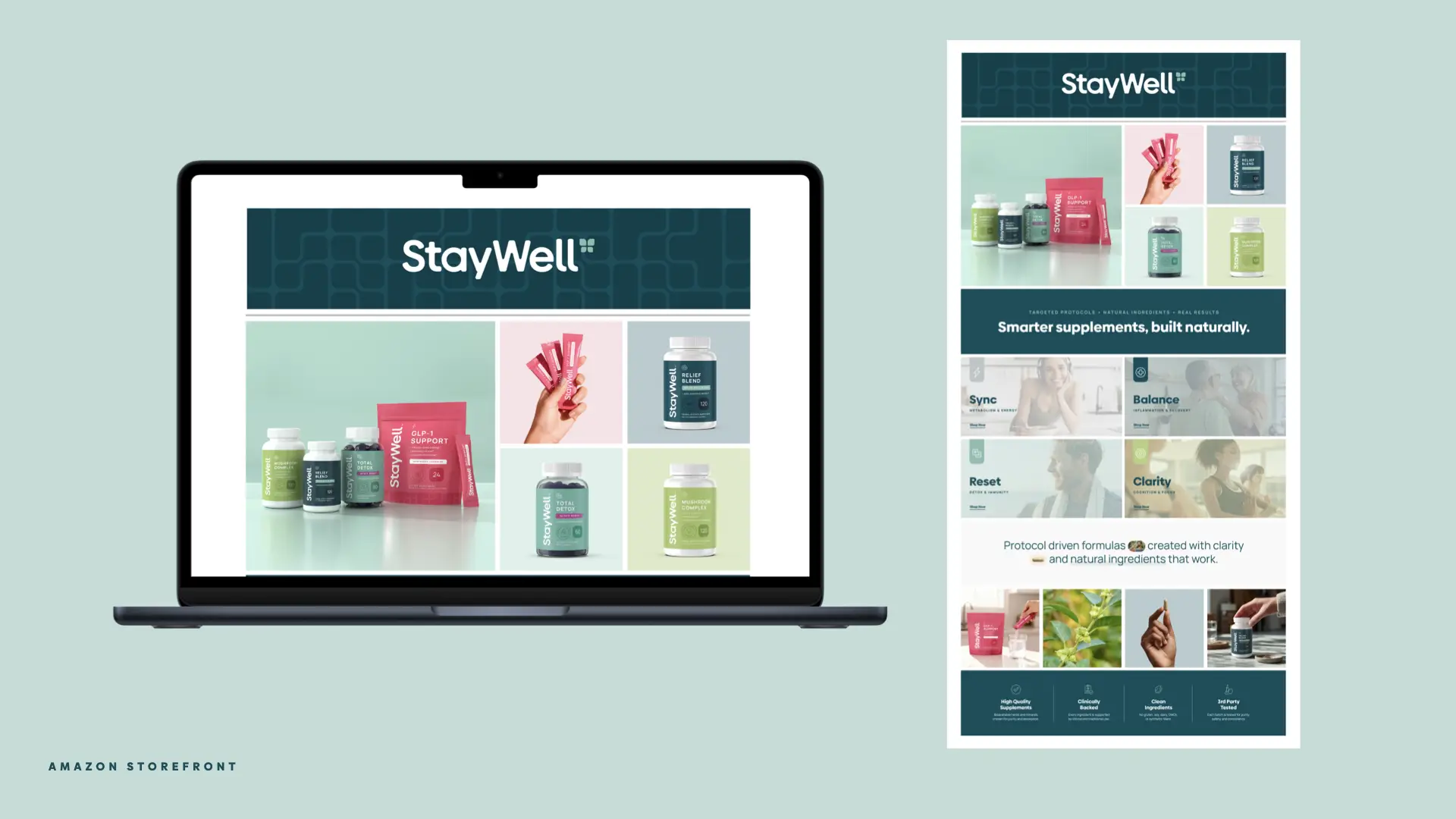 StayWell Naturals had an established presence on Amazon, but its brand felt dated and lacked the clarity needed to compete. The company’s visual identity, packaging, and website did not reflect its clinical credibility or long-term vision.